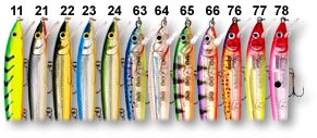 Los que mas he utilizado son los floating, en tamaños F6 (1/4 Oz, 3’ 5/8”), F7 (3/8 Oz, 4’ 3/8”) y F8 (5’ ¼”, 5/8 Oz) y de los colores, el mas “normal” de ellos, lomo negro, costados plata, resultan ser muy efectivos para pescar diversas especies de las que se han mencionado en éste escrito. Un color altamente recomendable es el azul-violeta, el azul macarela, el violeta, todos ellos funcionan a la perfección durante el día o en la tarde noche, en noches de luna reflejan muy bien la luz y eso me ha funcionado bien para el sábalo, el robalo, pargos y meros. Durante el día son atractivos para jureles, cojinudas, barracudas, pargos y robalos.