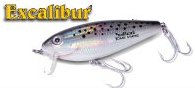 Este no es un señuelo fácil de conseguir por estos rumbos, sin embargo es uno de los mejores que he podido usar aqui ya que una versión muy pequeña me dio uno de los jureles más grandes que he podido pescar en el estero. Tiene un movimiento singular y es algo pesado, trabaja no en la superficie, un poco bajo ella, y al ser pesado se puede castear muy bien.