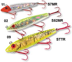 De los señuelos “lobineros” o trucheros (así los conocemos muchos de los que pescamos en agua dulce) que dan resultados en los esteros podemos mencionar a los Rapala Original Floating, que funcionan muy bien y que en ocasiones nos han dado hasta pequeños Sábalos, de ellos los colores que mas funcionan son el de lomo negro, costados blancos y el de lomo azul costados blancos, quizá lo único que no me parece muy recomendable es que al ser de madera balsa, cualquier pez (pargo, mero, barracuda, jurel) con dientes, los daña mucho. Un aspecto muy importante es que si vamos a usar señuelos de agua dulce en el estero, debemos cambiar los triples que traen originalmente por anzuelos para agua salada que son más resistentes. Al igual que los anzuelos debemos cambiar las anillas, ya que las originales son de materiales que se dañan fácilmente por la acción de las sales del agua de mar.